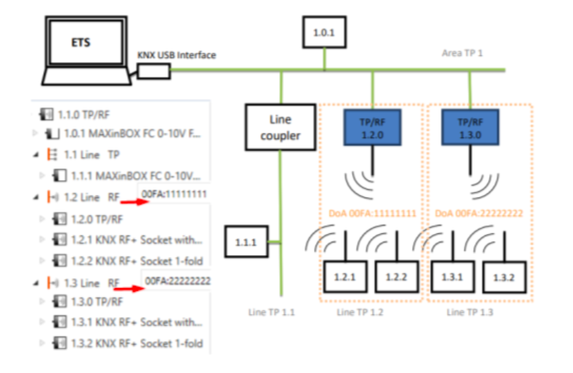 Anteriormente, un segmento de línea KNX soportaba hasta 64 dispositivos, requiriendo repetidores de línea para expandirse hasta 256 dispositivos. La razón de estos límites es asegurar la integridad del telegrama KNX al pasar por múltiples dispositivos.