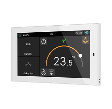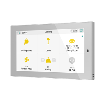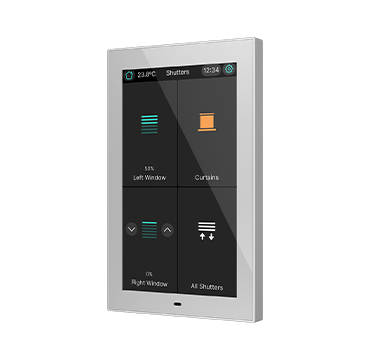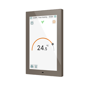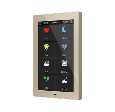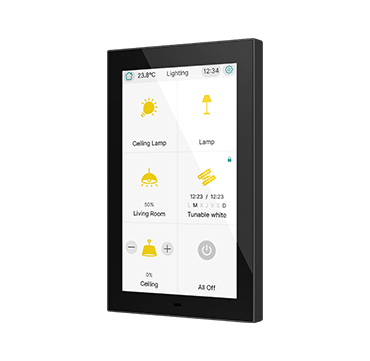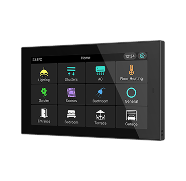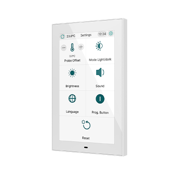 CX50 es una pantalla táctil capacitiva KNX de 5” con posibilidad de instalación en orientación horizontal o vertical. Diseñada para el control de estancias o como controlador principal de la instalación, integra sensores de temperatura y humedad que permiten una regulación precisa del ambiente. Permite configurar hasta 96 funciones distribuidas en páginas totalmente personalizables.