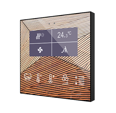 Panel táctil capacitivo retroiluminado de la familia Flat, con sensor de proximidad, diseño plano (9 mm) y totalmente personalizable. Cualquiera puede crear composiciones únicas incluyendo imágenes, iconos, textos. Su personalización está basada en una impresión profesional sobre cristal templado de gran resistencia. El control de la estancia se simplifica con 5 botones disponibles y hasta 8 indicadores pueden mostrarse en su display de 2.4”. Los iconos retroiluminados regulan su brillo con el sensor de luminosidad ambiente y se atenúan cuando el usuario no es detectado por el sensor de proximidad. Flat Display incorpora una sonda interna de temperatura y termostato, además de 2 entradas analógico-digitales que pueden ser configuradas como entrada binaria para sensor o pulsador libre de potencial, como sonda de temperatura o sensor de movimiento. Accesorios: Sondas de temperatura, sensor de movimiento