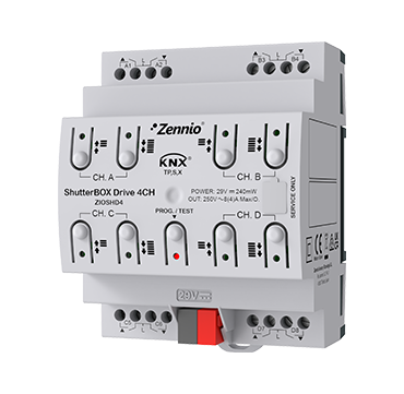 Actuador de persianas de 4 canales con medición automática de los tiempos de desplazamiento y KNX Secure