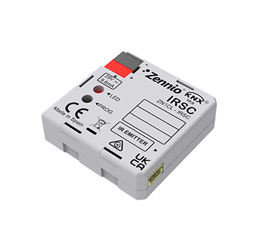 Módulo de control de aire acondicionado. El IRSC es un controlador por infrarrojos de máquinas de A/A capaz de integrar más de 300 modelos de unidades de A/A de diferentes fabricantes en una instalación KNX. Transmisor IR incluido.