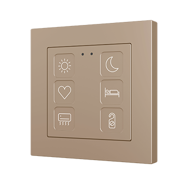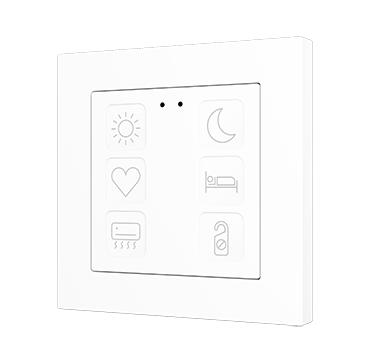 Familia de pulsadores capacitivos de policarbonato con iconos retroiluminados personalizables, enrasados con familia de mecanismos de 55 x 55 mm Zennio ZS55. Existen modelos de 1, 2, 4 y 6 botones con funciones configurables e iconos retroiluminados, los cuales regulan su brillo con el sensor de luminosidad ambiente y se atenúan cuando el usuario no es detectado por el sensor de proximidad.