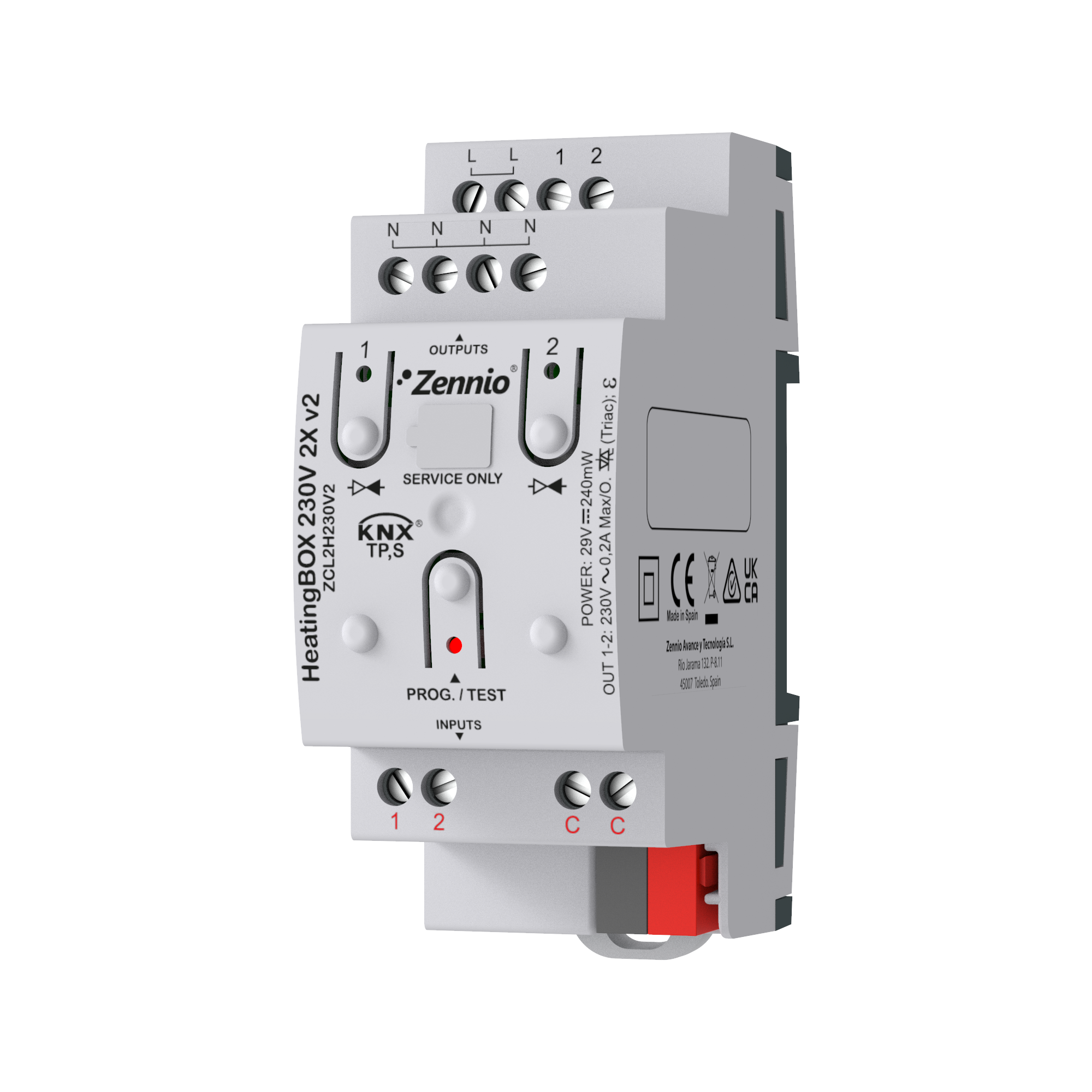 Actuador de calefacción con 2 canales de salida a 230 VAC y 2 entradas
