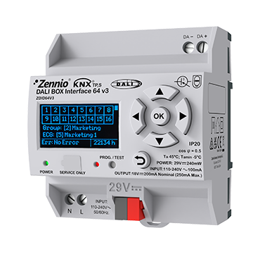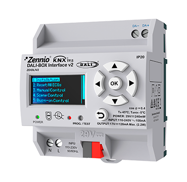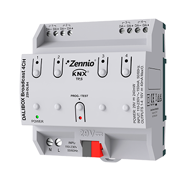 Interfaz KNX - DALI broadcast hasta 4 canales de hasta 64 balastos por canal