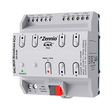 Interfaz KNX - DALI broadcast hasta 6 canales de hasta 20 balastos por canal