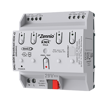 Interfaz KNX - DALI broadcast hasta 4 canales de hasta 20 balastos por canal