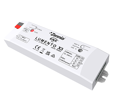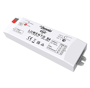 Regulador en carril DIN de 4 canales PWM de tensión constante para cargas LED DC.