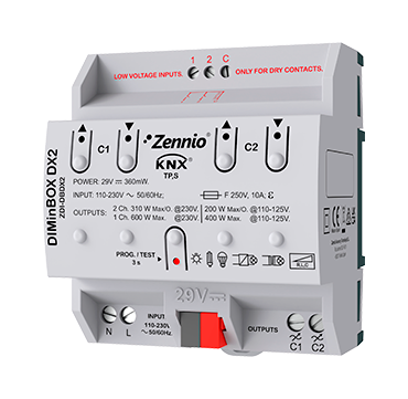 Actuador dimmer universal (RLC, LED, CFL) para carril DIN. 1 canal x 350 W
