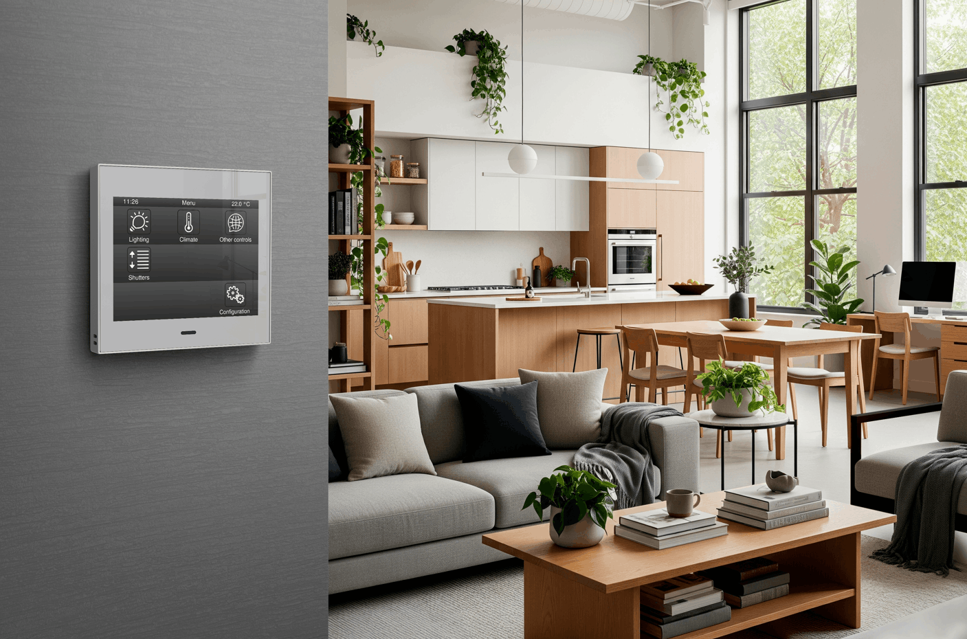 Crea escenas personalizadas para ajustar luces, persianas y más, adaptando el ambiente a tus necesidades